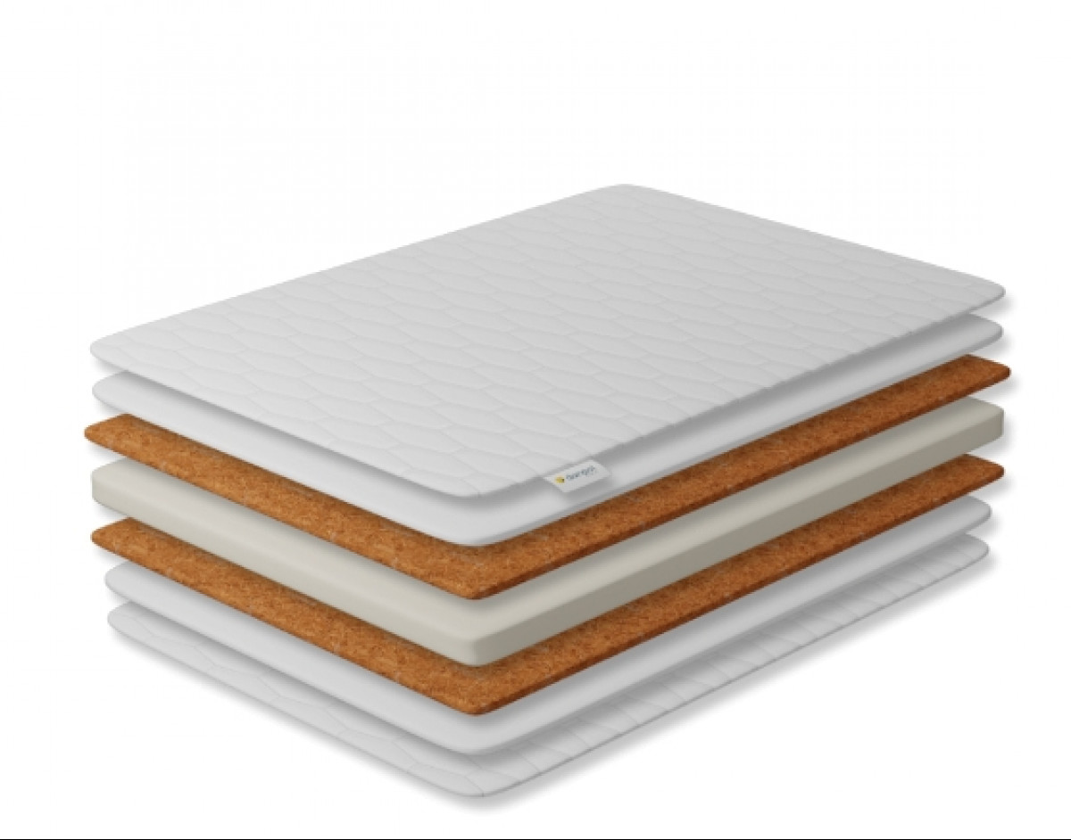A babaágyhoz kiváló minőségű matrac, mely rugalmas és stabil fekvőfelületet biztosít. A matrac rétegződése: Kókuszlap, szivacs (poliuretánhab), kókuszlap. A fehér huzat levehető és 40 ° C-on mosható, Mérete: 70 x 140 cm / 10 cm vastag, A kókuszréteg porózus szerkezete segíti a levegő szabad áramlását, Latexvegyülettel kombinált (környezetbarát tartósítás) kókuszrost, Megerősített habszivacs.