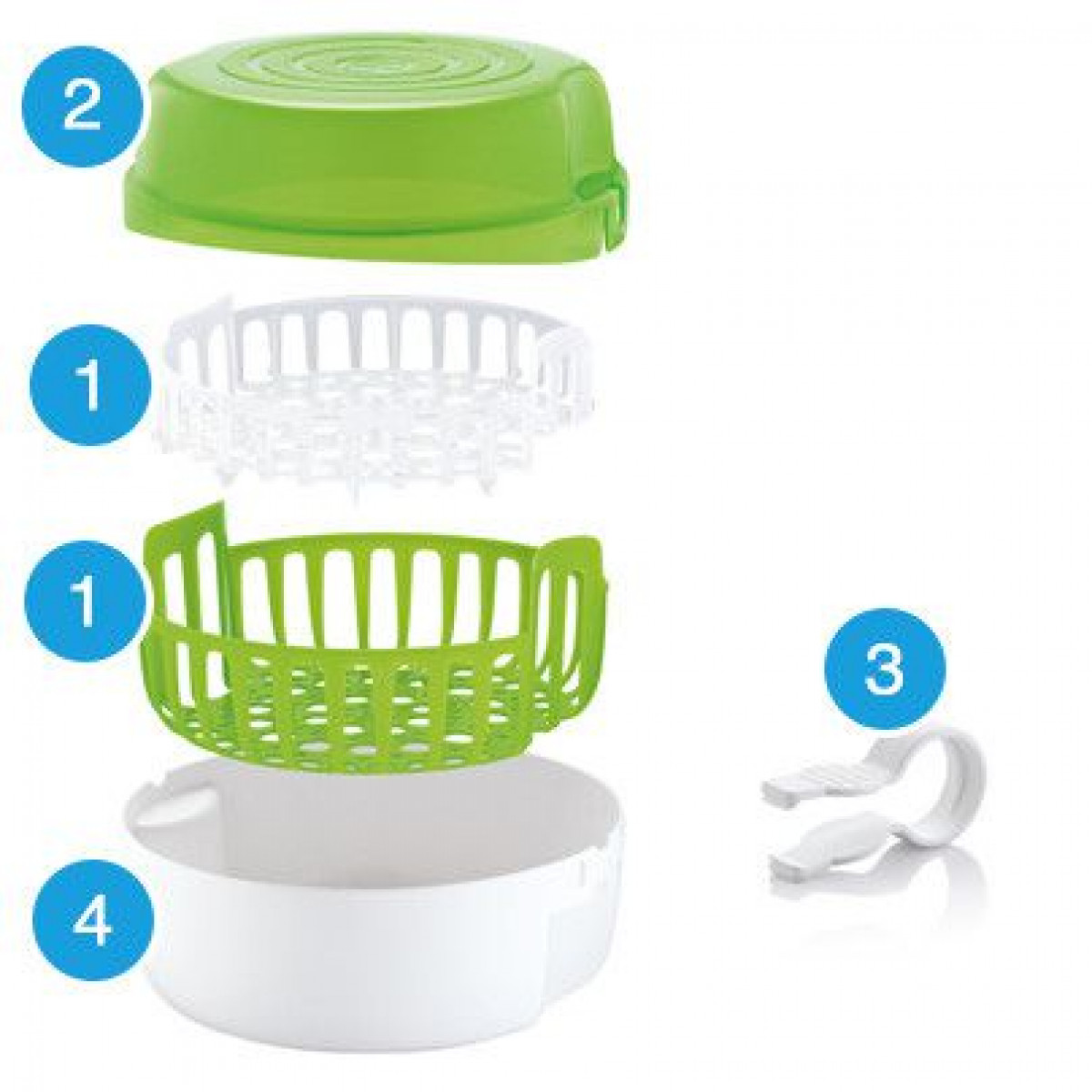 Különösen alkalmas az összes MAM cumisüveg, szívóka és egyéb babagondozási termék sterilizálására. Mikrohullámú sütőben való, valamint hideg vizes sterilizáláshoz