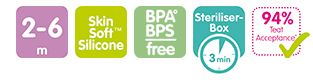 MAM SkinSoftTM szilikonnal kapható - a gyors elfogadásért