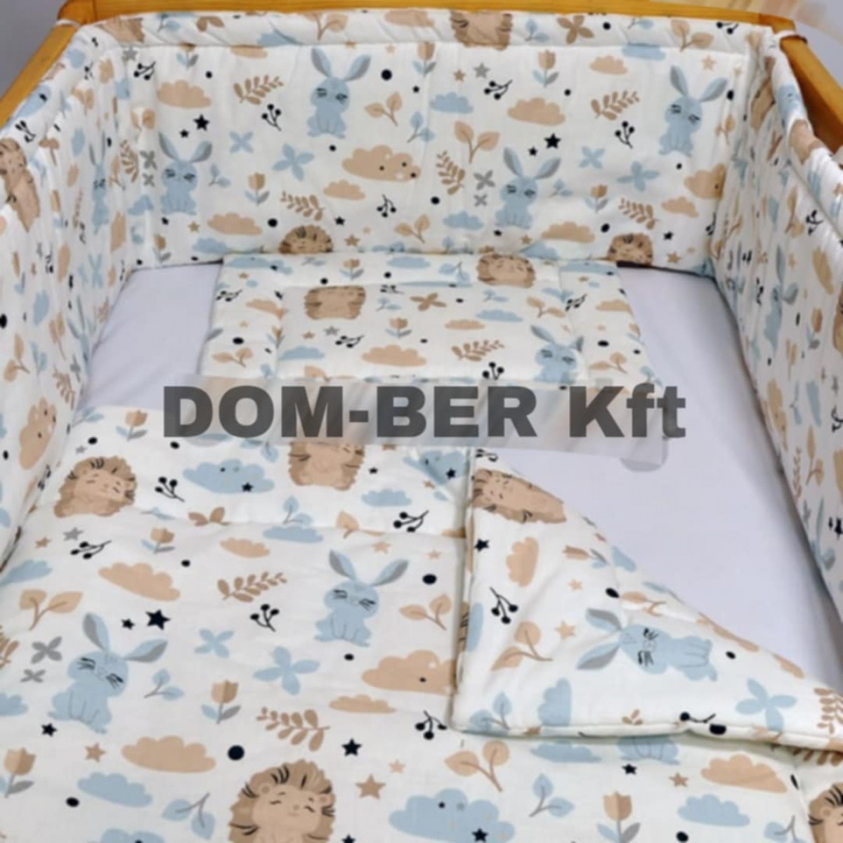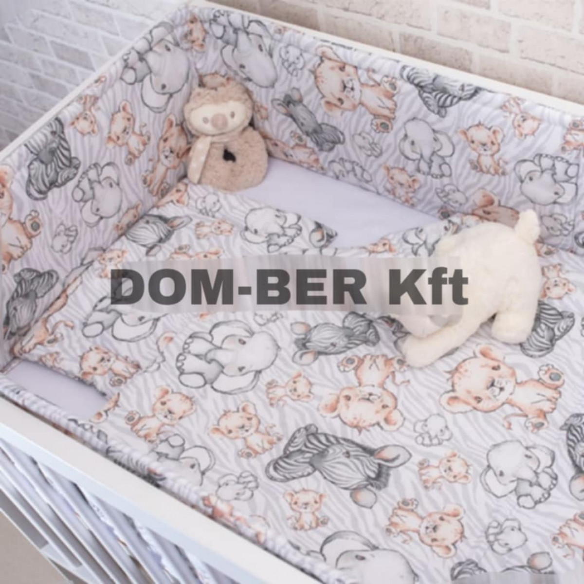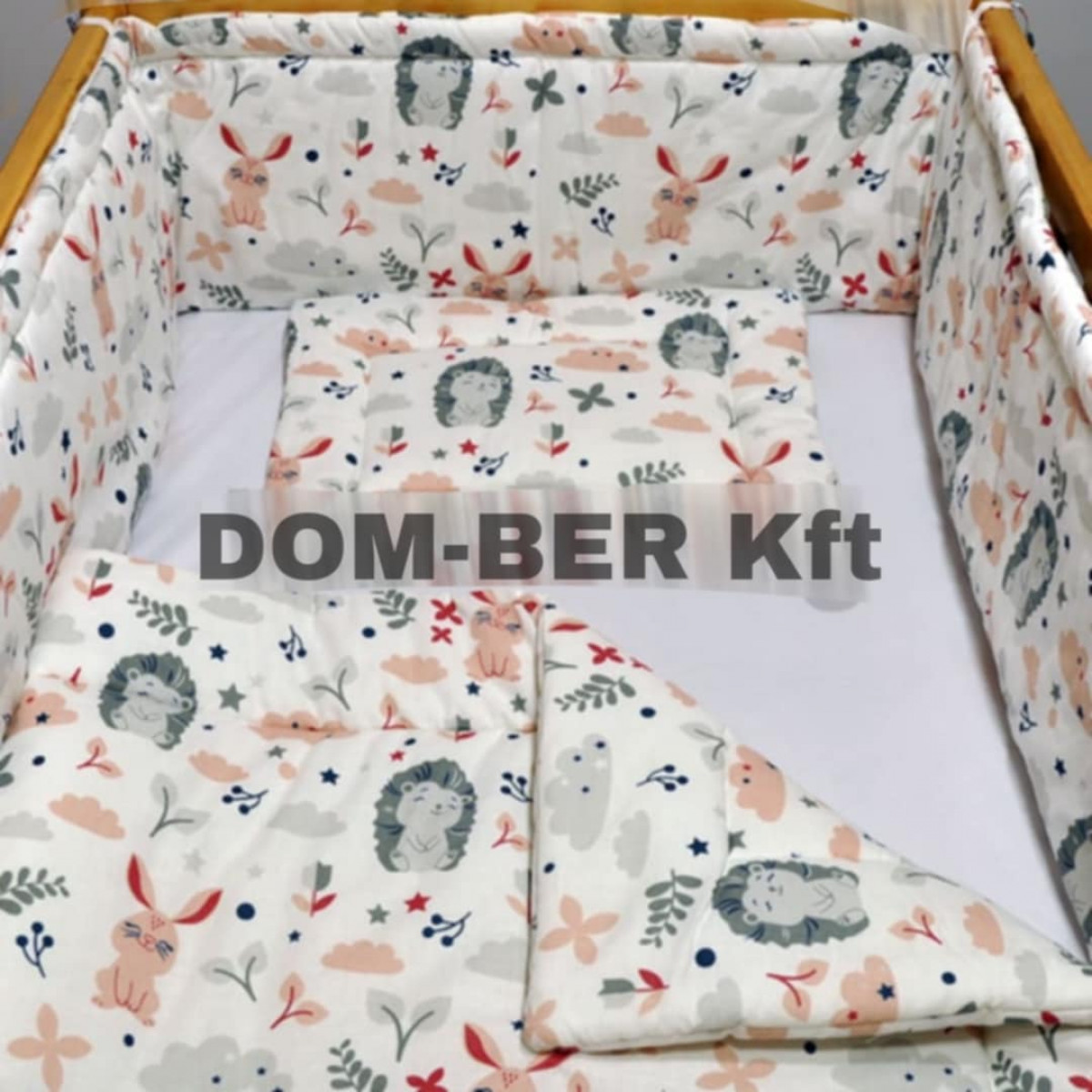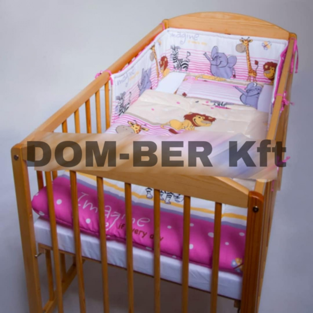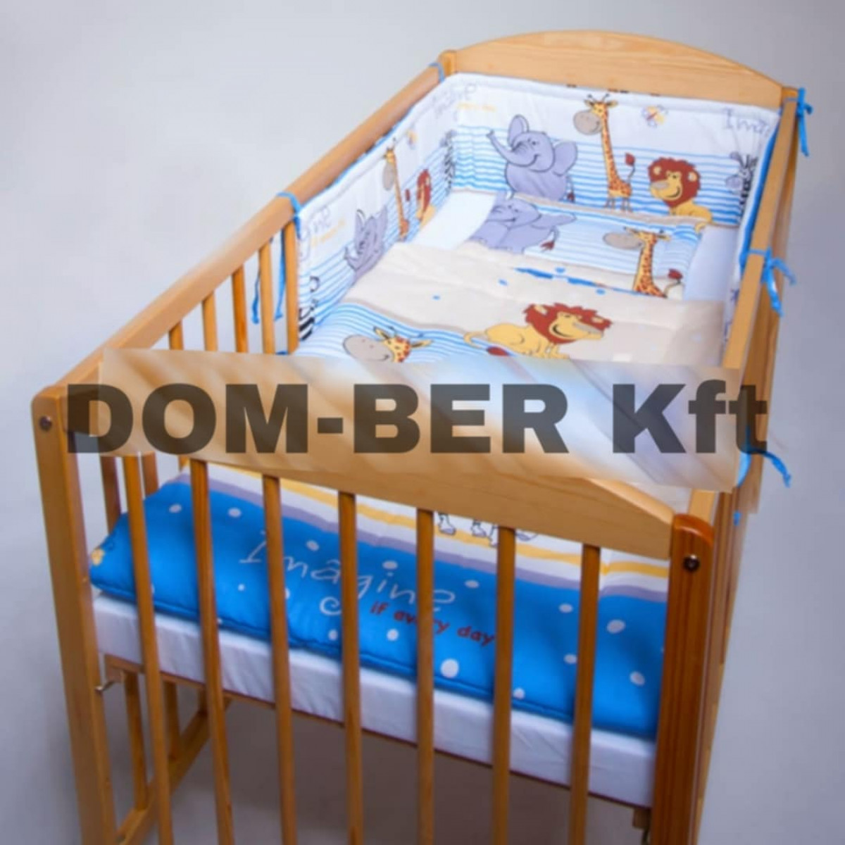 Három részes (takaró + párna + fejvédő) mosható ágynemű szett, színes vidám mintákkal, az anyukák és a kisbabák legnagyobb örömére. A fejvédő óvja a már fejét emelgetni tudó babát az ággyal való ütközéstől, mely kötők segítségével erősíthető a kiságyhoz. Az ágyneművel azonos mintájú anyagból elérhető baldachinfüggöny, kókuszpólya, szoptatóspárna is.