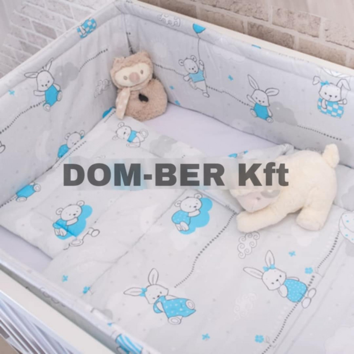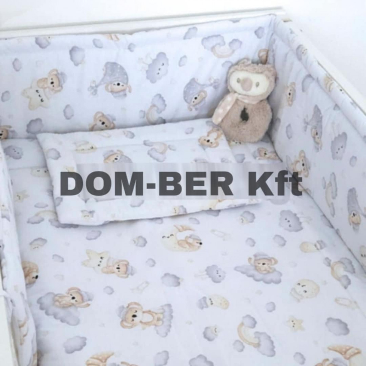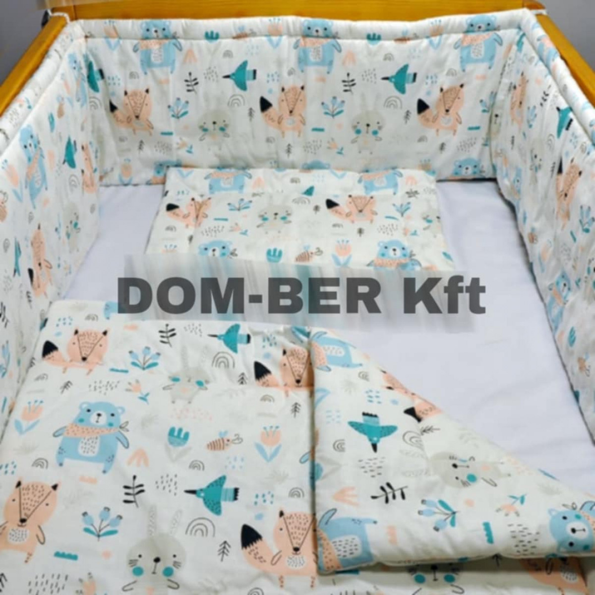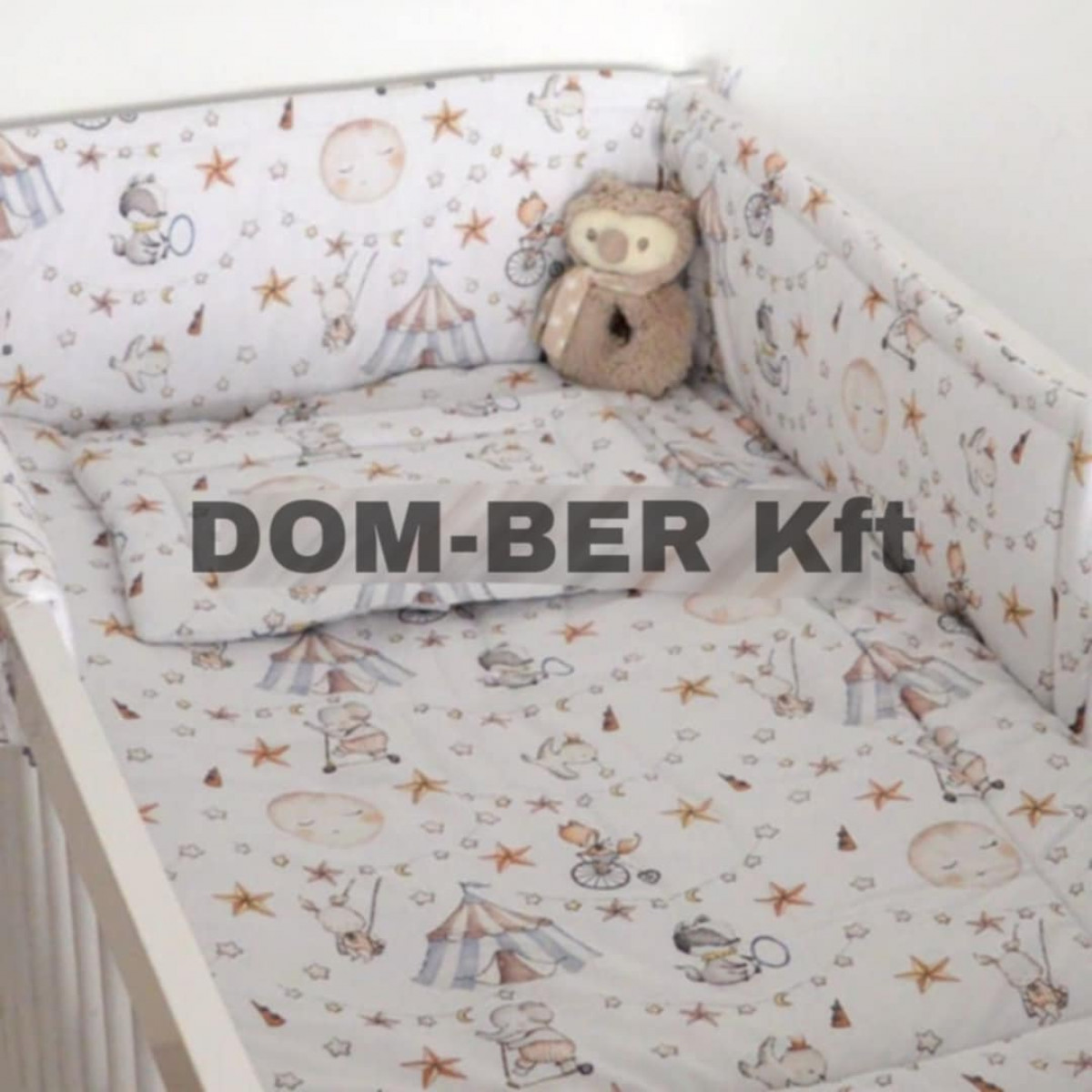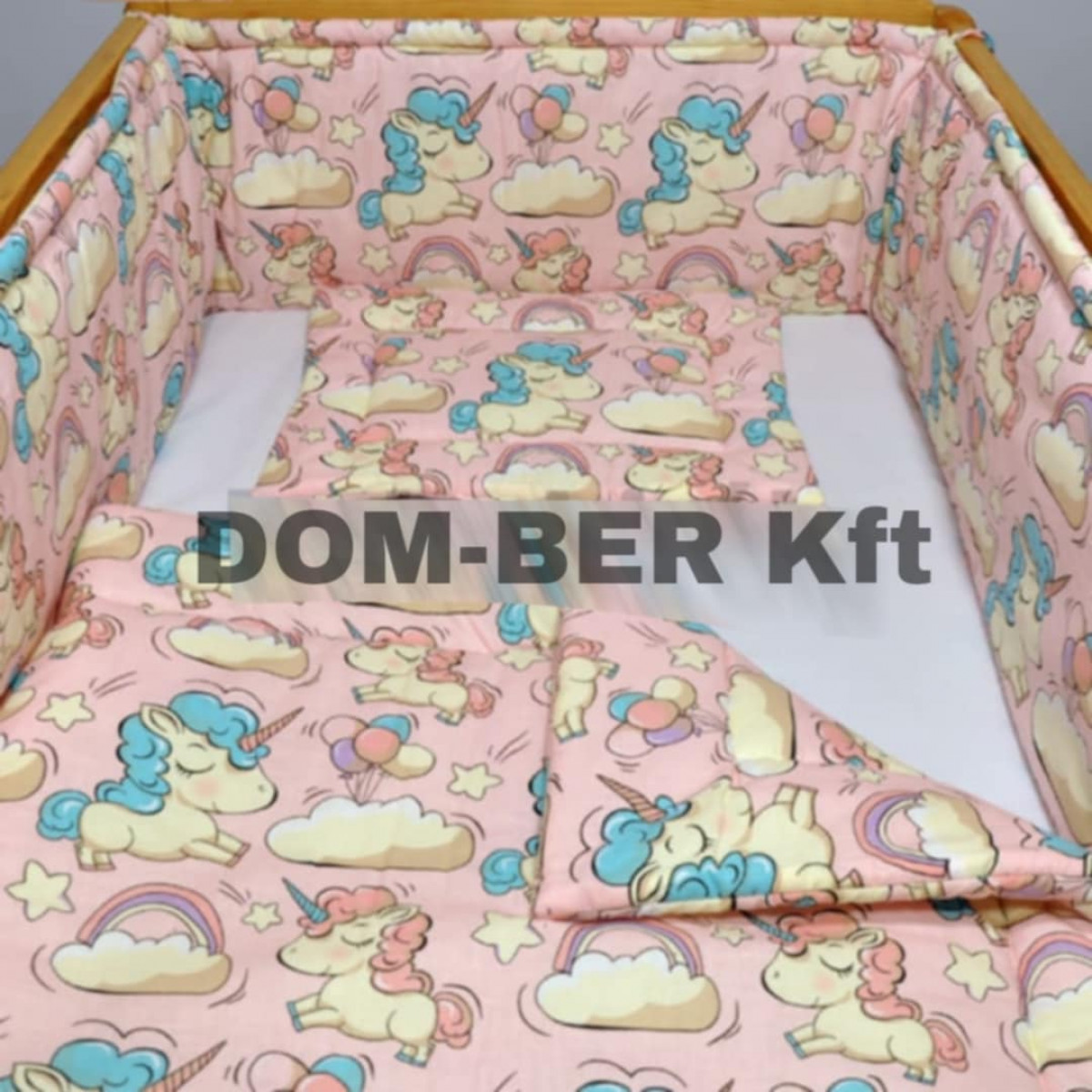 Három részes (takaró + párna + fejvédő) mosható ágynemű szett, színes vidám mintákkal, az anyukák és a kisbabák legnagyobb örömére. A fejvédő óvja a már fejét emelgetni tudó babát az ággyal való ütközéstől, mely kötők segítségével erősíthető a kiságyhoz. Az ágyneművel azonos mintájú anyagból elérhető baldachinfüggöny, kókuszpólya, szoptatóspárna is.