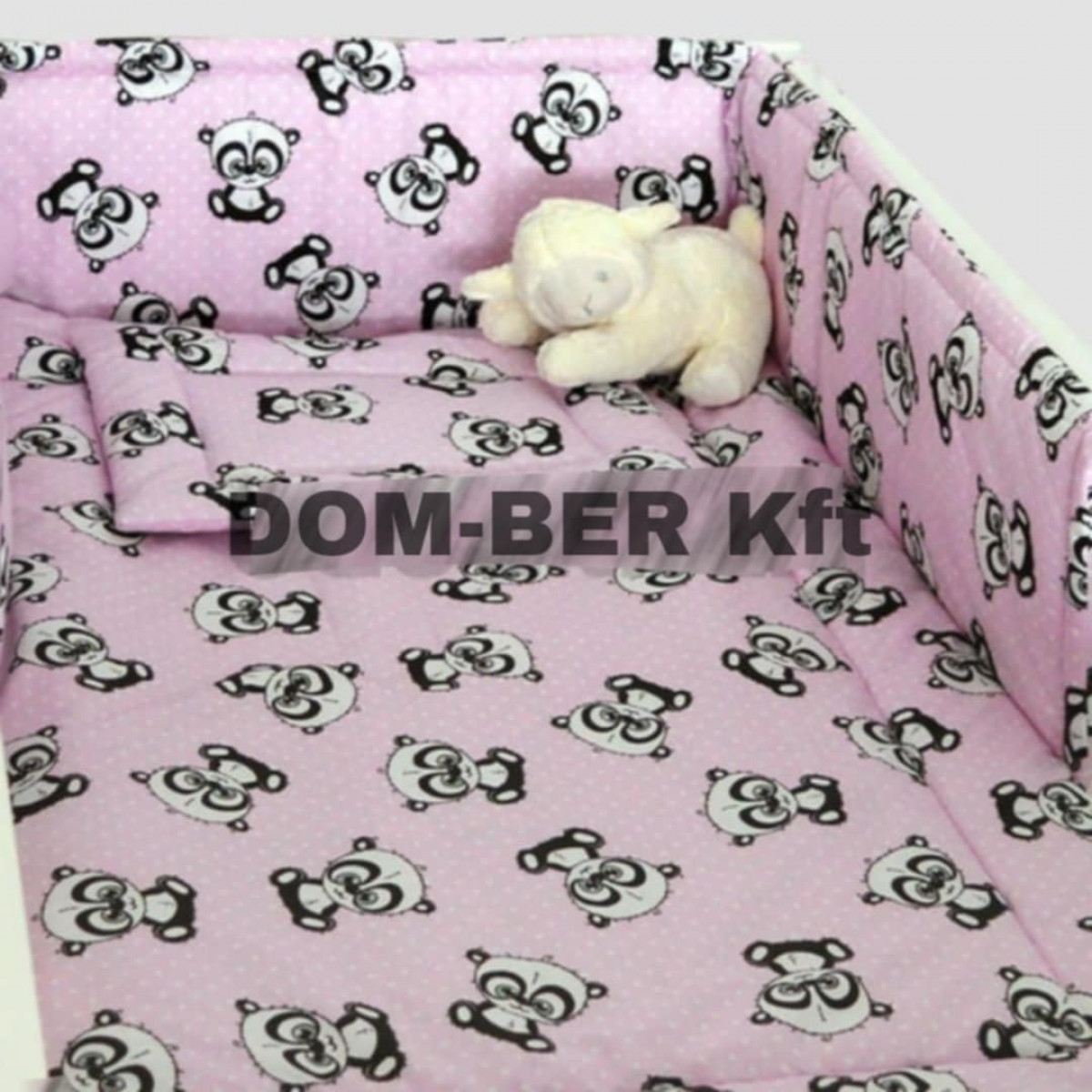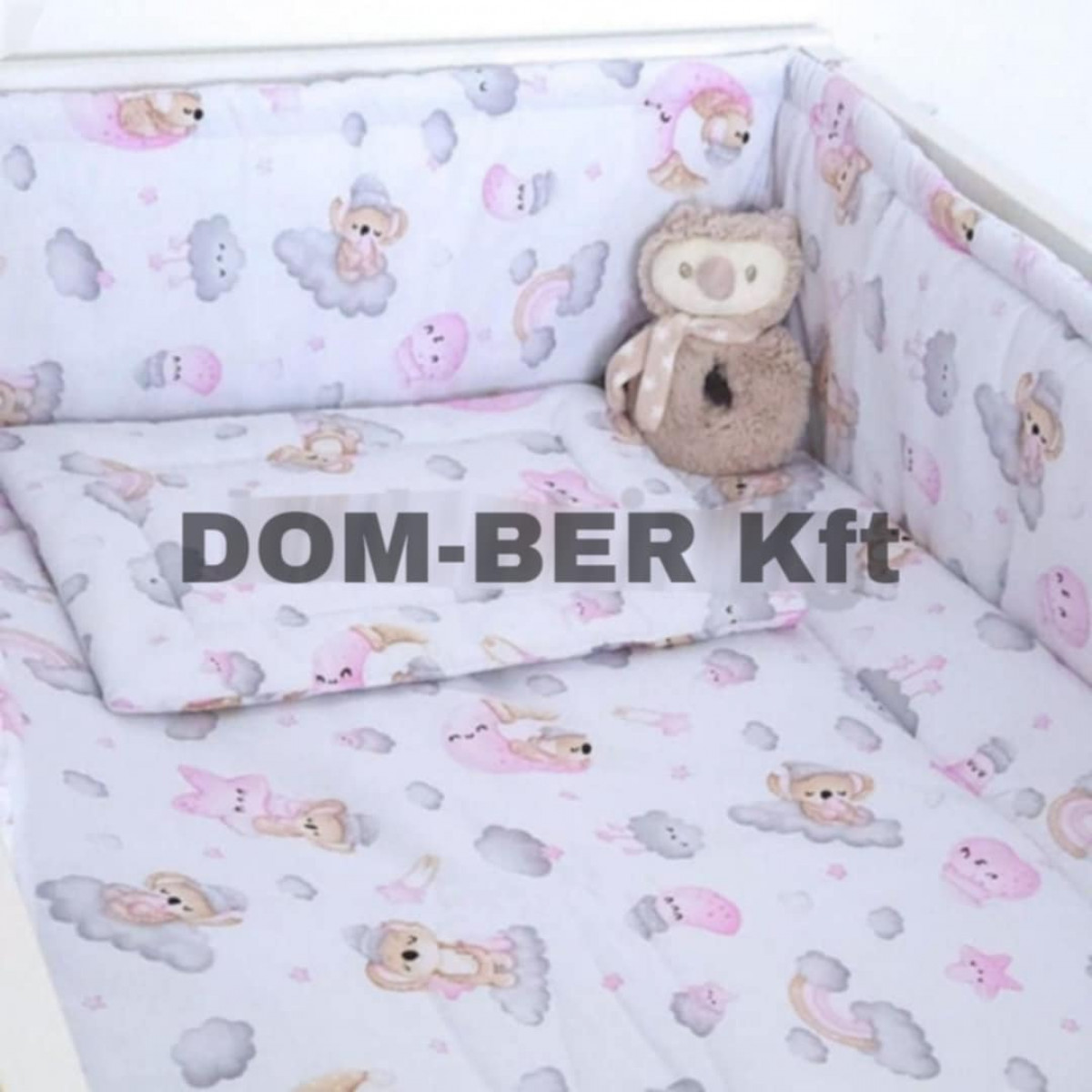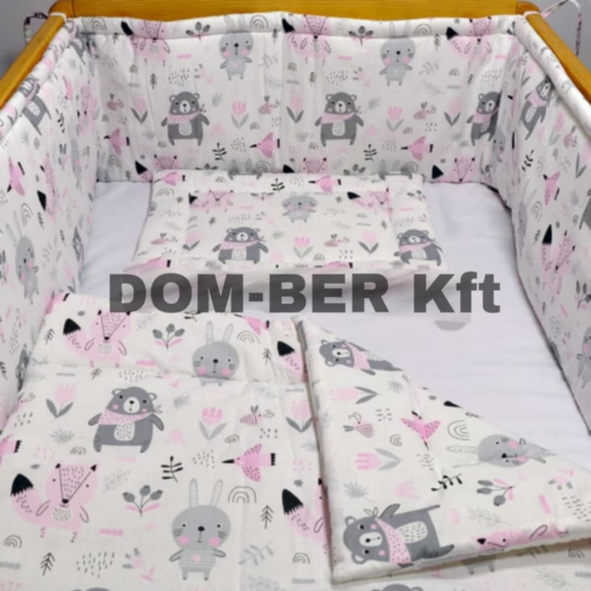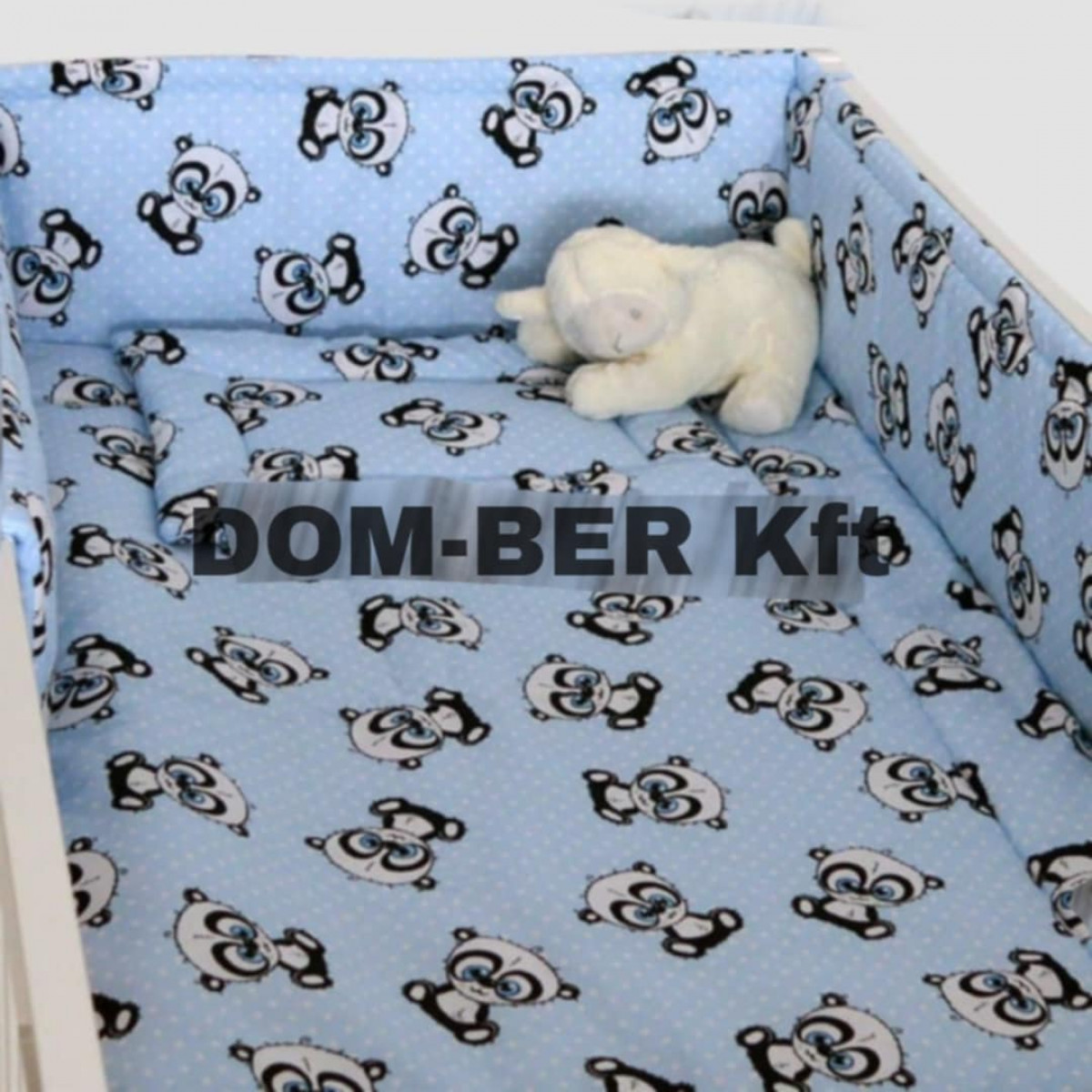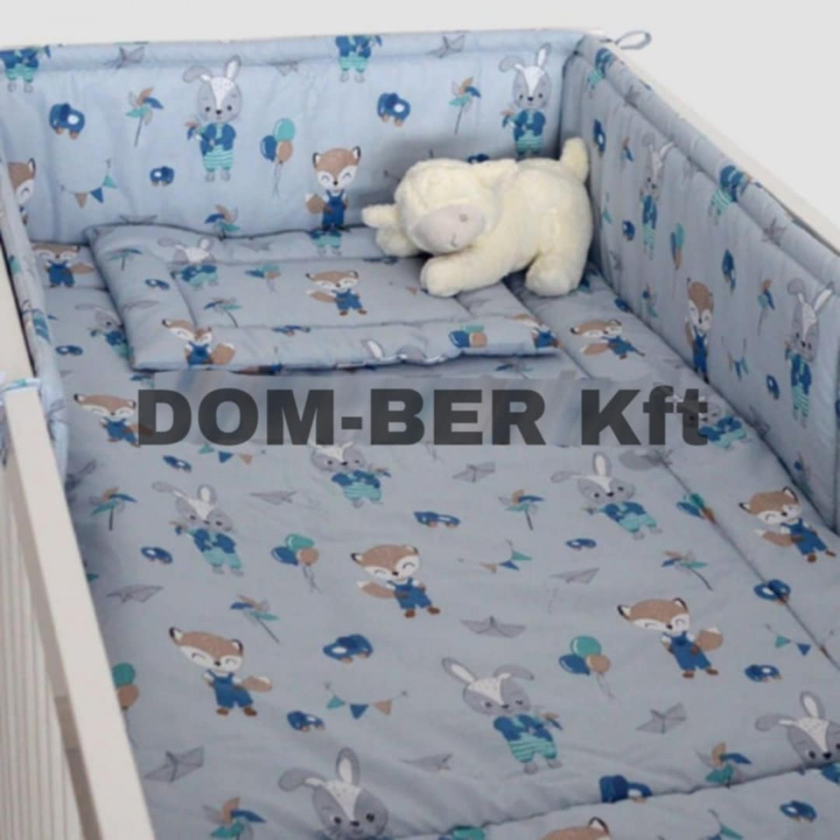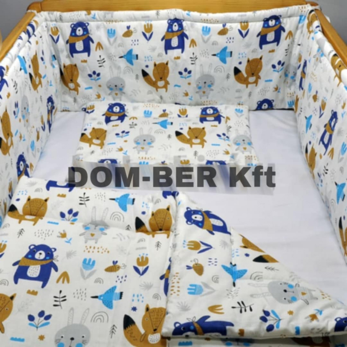 Három részes (takaró + párna + fejvédő) mosható ágynemű szett, színes vidám mintákkal, az anyukák és a kisbabák legnagyobb örömére. A fejvédő óvja a már fejét emelgetni tudó babát az ággyal való ütközéstől, mely kötők segítségével erősíthető a kiságyhoz. Az ágyneművel azonos mintájú anyagból elérhető baldachinfüggöny, kókuszpólya, szoptatóspárna is.