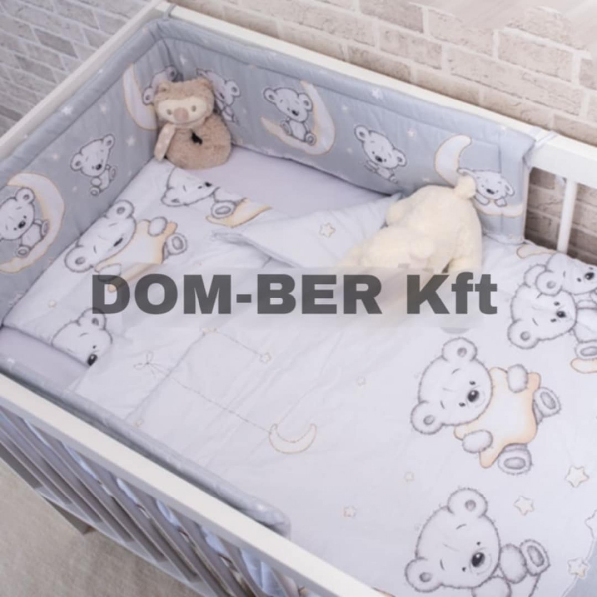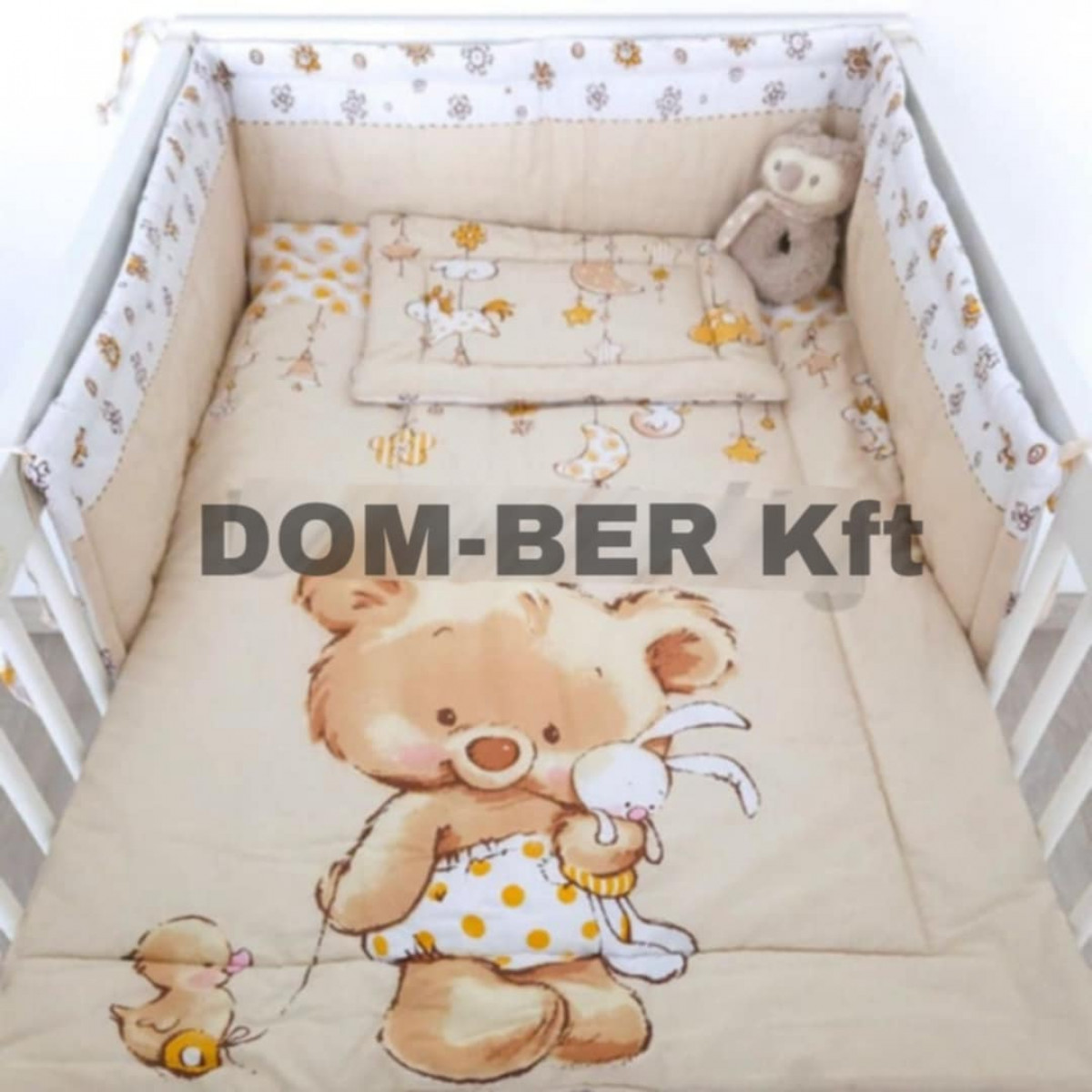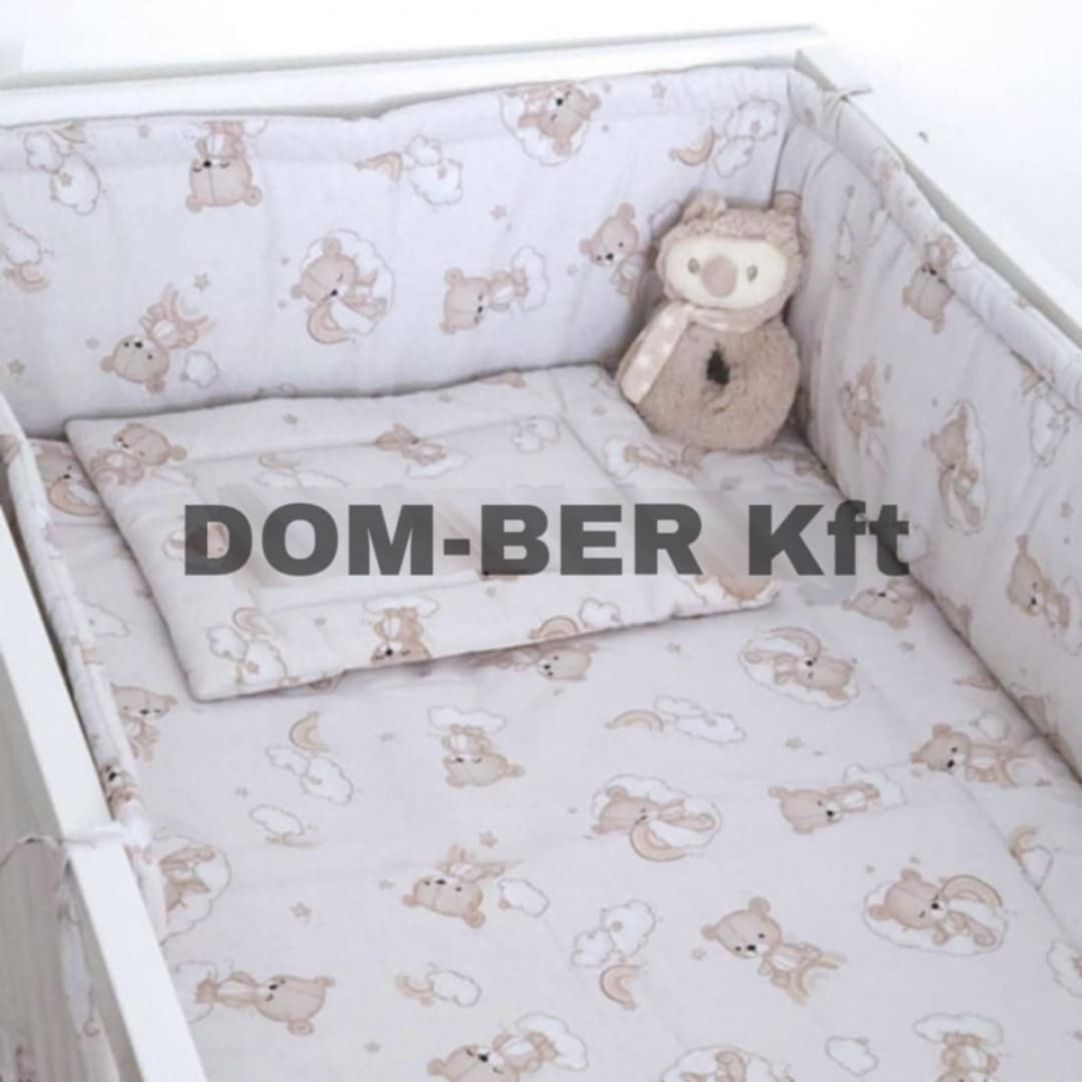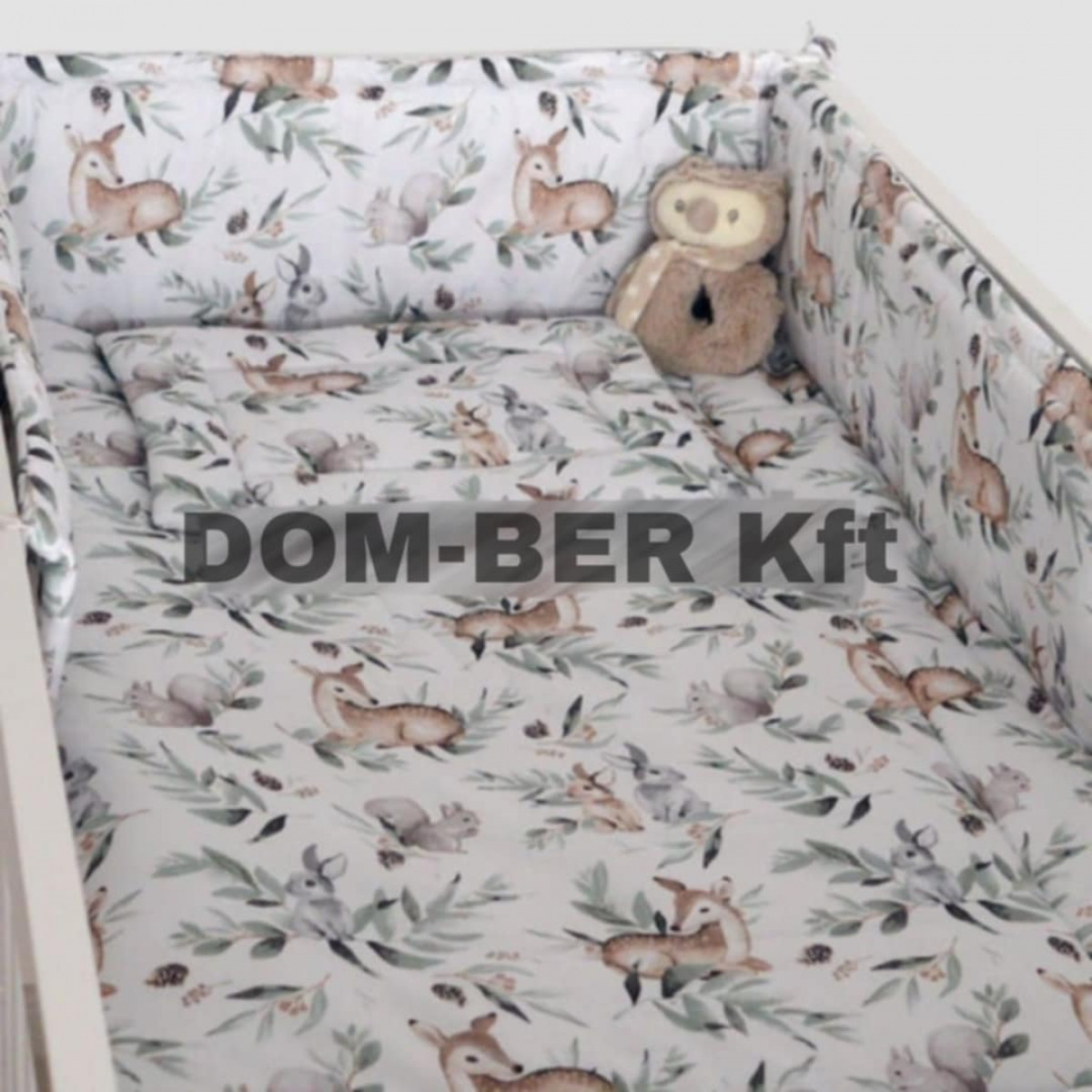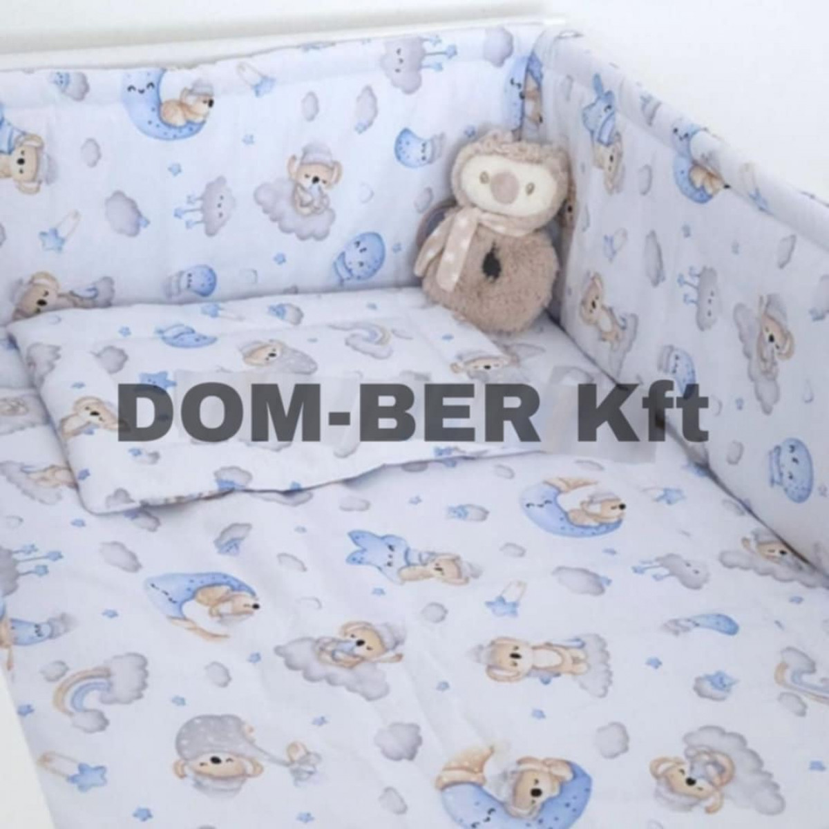 Három részes (takaró + párna + fejvédő) mosható ágynemű szett, színes vidám mintákkal, az anyukák és a kisbabák legnagyobb örömére. A fejvédő óvja a már fejét emelgetni tudó babát az ággyal való ütközéstől, mely kötők segítségével erősíthető a kiságyhoz. Az ágyneművel azonos mintájú anyagból elérhető baldachinfüggöny, kókuszpólya, szoptatóspárna is.
