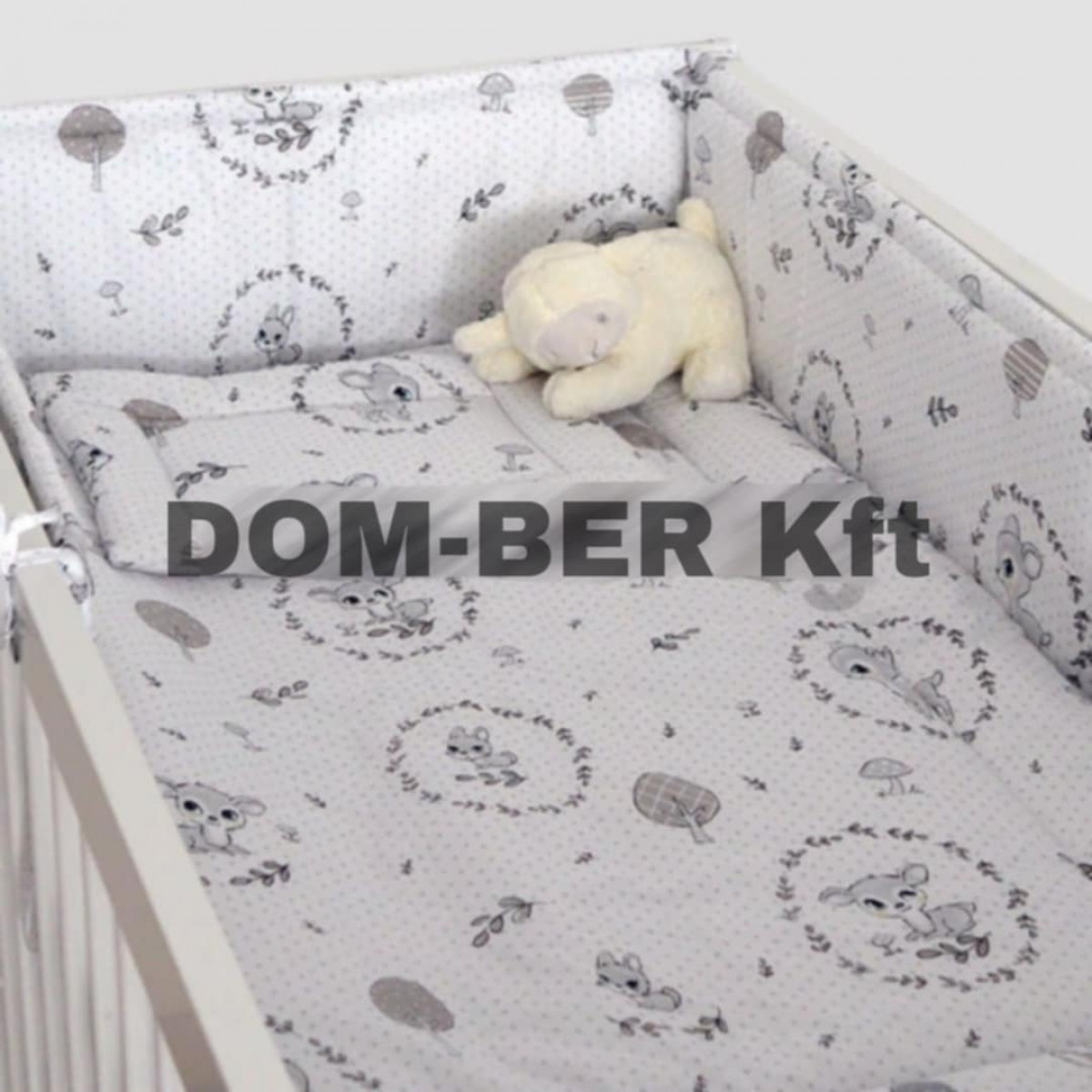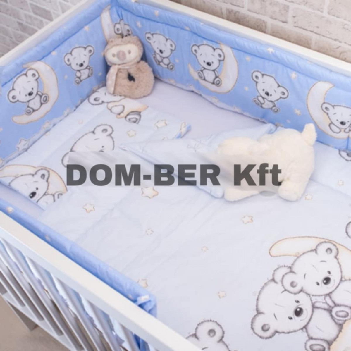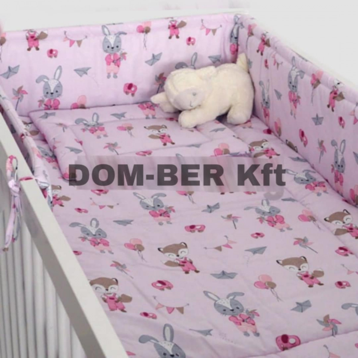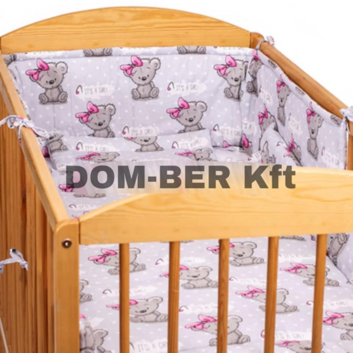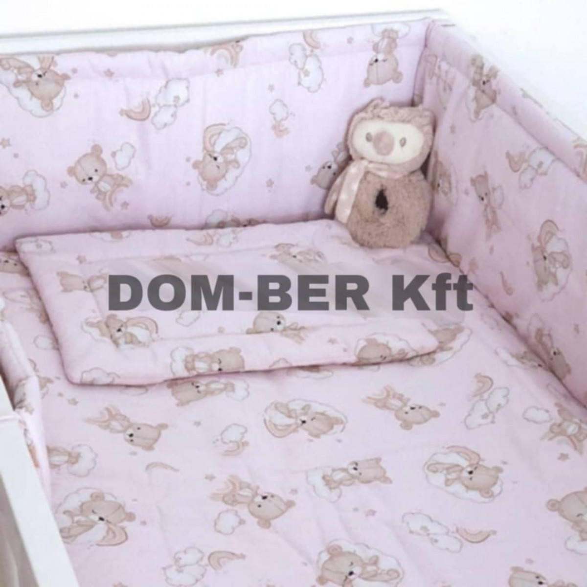 Három részes (takaró + párna + fejvédő) mosható ágynemű szett, színes vidám mintákkal, az anyukák és a kisbabák legnagyobb örömére. A fejvédő óvja a már fejét emelgetni tudó babát az ággyal való ütközéstől, mely kötők segítségével erősíthető a kiságyhoz. Az ágyneművel azonos mintájú anyagból elérhető baldachinfüggöny, kókuszpólya, szoptatóspárna is.